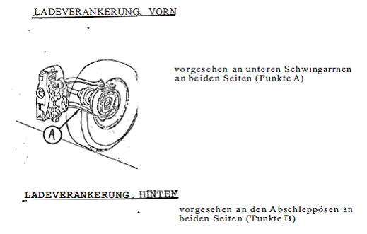 Abschleppen: Bindung an den unteren Schwingarmen durch Schutz der Verkleidungsbleche.