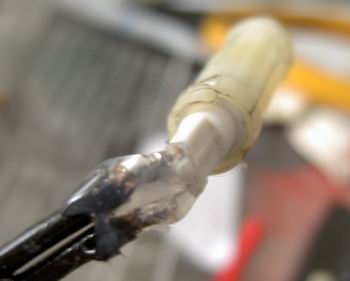 Da dies optisch nicht gerade ansprechend ist, verschönern wir dies alles nun noch mit dem passenden Schrumpfschlauch. Perfektionisten nehmen gelben, wie er bei der Originalfassung auch zum Einsatz kam. Einfach drüberstülpen, erhitzen, fertig: