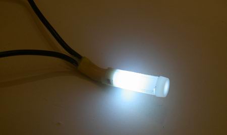 Das Foto zeigt, der originale Plastikkörper wird von der 180°-LED wie eine schöne kleine Laterne erleuchtet, so soll es sein.