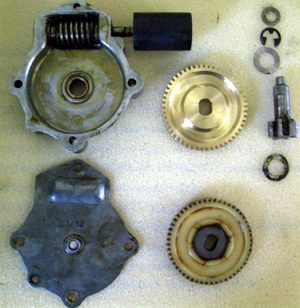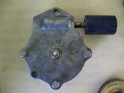 Wesentliche Arbeitserleichterung beim Ausbau ist die Kenntnis der Befestigung: Das Getriebe ist mit 3 Schrauben mit 7mm Schlüsselweite am Fensterheber befestigt (auf dem Bild bei 3, 6 und 9 Uhr). Diese kann man zwar nicht sehen, aber durch die Türöffnungen erfühlen und auch lösen, dann ist der Ausbau eine Sache von 15 Minuten, weil die gesamte Fensterhebermechanik montiert bleiben kann. Die schwarze Trommel rechts im Bild ist die Kupplung zum Motor, den kann man dann auch gleich reinigen und fetten, er ist mit zwei zu erfühlenden Schrauben befestigt.