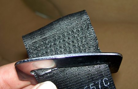 Auf den Sitzen befindet sich dann die Einschiebe-Schiene, wie im Bild oben zu sehen. Übrigens: Die Fahrerseite hat eine graue Schnalle und ein graues Gurtband, die Beifahrerseite beides in schwarz!