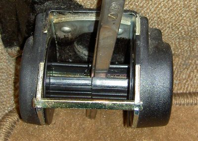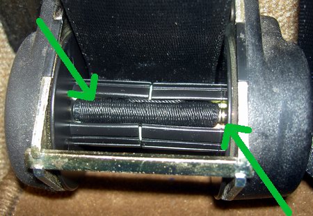 Das Prinzip ist sehr einfach: Die Achse ist mit einer Feder versehen, die man manuell vorspannt. Dann wird der Gurt in die Achse gefädelt und bei Nichtgebrauch wickelt die Achse automatisch das Gurtband auf.