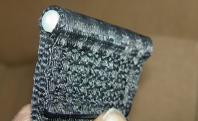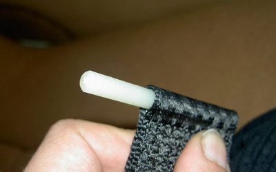 Wenn man nun Glück hat, kann man sowohl die Umlenklasche als auch den Stecker einfach über das lose Ende mit der genähten Schlaufe abziehen. Hat man dieses Glück nicht, muss der Schlitz des Steckers mit einem Lötkolben etwas „aufgeschmolzen“ werden - Aufpassen, dass man das Gurtband dabei nicht beschädigt!