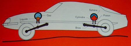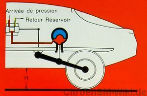 Der Citroen SM verfügt nicht über herkömmliche mechanische Federn und entsprechende Stoßdämpfer wie herkömmliche Autos, sondern über ein hydropneumatisches Fahrwerk. Wie der Name schon erläutert, funktioniert das System teils mit Luft bzw. Gas und teils mit Flüssigkeit bzw. Öl.. Schlüssel des Systems sind die sogenannten Federkugeln.