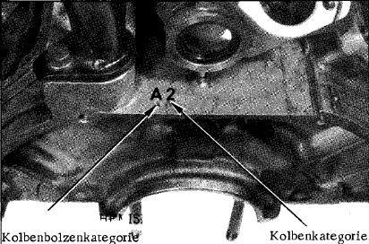 Die verbaute Kategorie mit entsprechendem Durchmesser sowie das Maß der Kolbenbolzen kann man an diversen Stellen ablesen: Direkt an der Oberseite des Motorblocks, zwischen Öleinfüllstutzen und Zündverteiler: