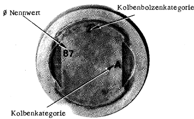 Auch auf dem Kolbenboden sind Kategorie und Nennwert eingestanzt. Bei gebrauchten Kolben muss der Boden evtl. gereinigt werden, bis diese sichtbar werden: