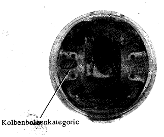 Kolben früher Motoren haben keine Kennzeichnung bzgl. des Kolbenbolzens, erst ab der Motor-Nr 104500 kann man an der Innenseite die Bolzenkategorie ablesen: