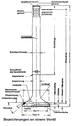 Einlassventile Einlassventile sind von 500°C bis 650°C ausgesetzt. Sie haben einen Durchmesser von 7,85mm. Nur die Einlassventilschäfte erhalten Dichtungen (Goetz WDR 860-1 NWP), diese sind immer bei Reparaturen zu erneuern. Bei jeder Zylinderkopfüberholung sollten Ventile und Ventilsitze neu eingeschliffen werden, weil der Ventilsitz mit dem Sitz im Ventilkopf eine metallische Abdichtung herstellen muss. Dabei beträgt die Breite des Ventillauflagers 2,5 mm maximal bei den Einlassventilen, der Winkel 90 (45) Grad. Verwendung findet ein induktiv gehärteter Werkstoff.