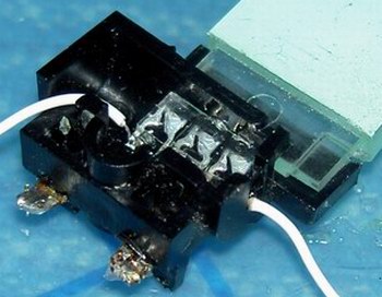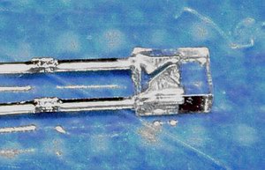 Die Tiefe der Lampenkammer beträgt ca. 7mm, die originale Lampe hatte einen Durchmesser von 5mm. Wir brauchen also schmale, flache und kurze Dioden. Nach ein wenig Suche findet man spezielle, kantige LEDs, die extra für das Beleuchten von Lichtleitern konzipiert sind: