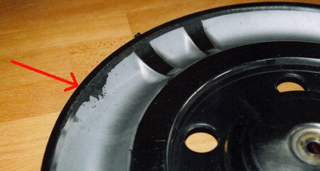 3. Die schwarze Lackierung um die Löcher der Radschrauben ist zwar haltbarer als das Silber, wird aber von den unter 1. beschriebenen Pappenheimern mit dem Radmutternschlüssel verkratzt.