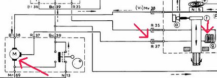 Neben korrodierten Kontaktlaschen kommt nur die große Elektrospule als Fehler in Frage: Durchgang messen. Außerdem ist der Schalter unter der Spule zu prüfen. Öffnet er sich nicht, wenn die Spule Strom bekommt, dann versorgt er zeitgleich die langsame Wicklung des Motors und führt zu Störungen.