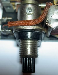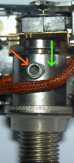 Dies ist nämlich keineswegs ein Potentiometer, wie man vermuten könnte. Tatsächlich hat der Drehregler keinerlei Stromanschluss, mit der Drehbewegung steuert man lediglich den Kolben-Abstand zum Schalter darüber.