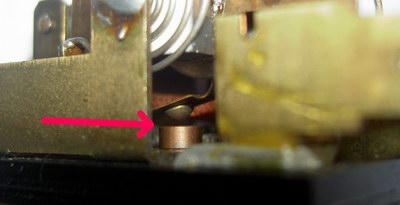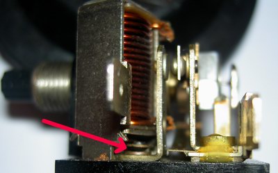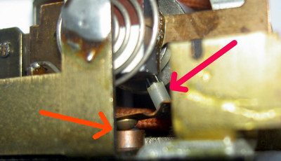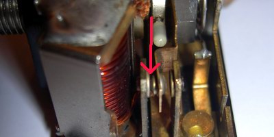 Ist der Schalter nicht wie oben geschlossen, sondern permanent geöffnet, ist der Rücklauf ebenfalls deaktiviert. Auch hier sollte man sich nicht auf seine Augen verlassen, sondern den Durchgang nachmessen. Bei Fehlfunktion ist er zu reinigen bzw. so zu biegen, dass er im Ruhezustand geschlossen ist, durch den Pin in der Spule aber geöffnet werden kann.
