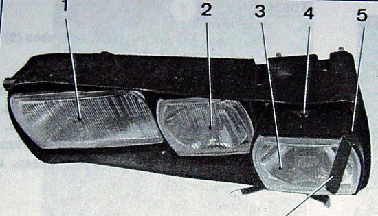 Auf Seite 540 / 1 finden wir obiges Bild. Dies zeigt den Punktschweinwefer mit Klarglas als Schwenkscheinwerfer und die Streulichtvariante als feststehend. Auch die technische Mitteilung "745/71" vom Juli 1971 zeigt die Scheinwerfer und ihre Reihenfolge:
