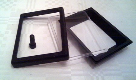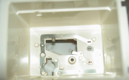 Der Deckel ist hierbei das Plexiglas, das in 6 Metallaschen gefasst ist. Zum Öffnen muss man vorsichtig diese Laschen mit einem dünnen Schraubenzieher oder einer Zange aufbiegen, ohne das Plastik zu zerkratzen. Nach dieser etwas aufwändigen Arbeit wendet man sich der Rückseite zu: