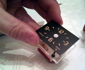 Danach schrauben wir die Ziffernblätter vorsichtig fest und unser Austauschmodul ist soweit fertig konstruiert. Dabei darf man nicht vergessen, die kleine Justageachse mitsamt Feder vorher einzufügen, denn schließlich will man die Uhr letztendlich auch stellen können.
