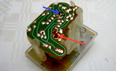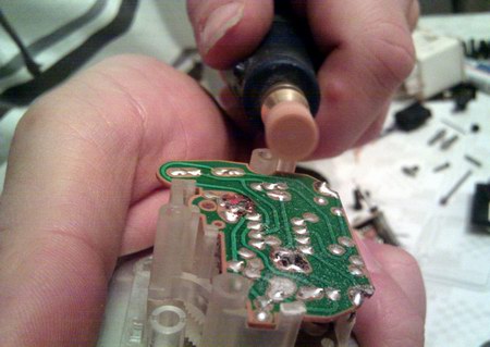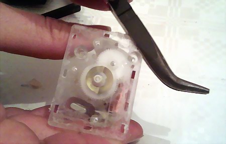 Das Ablöten ist einfacher als es klingt, danach kann das Uhrwerk leicht aus dem Plastikgehäuse gezogen werden.