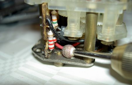 Aufpassen muss man auf die Einstellachse mit ihrer kleinen Feder und auf die Aufsteckhülse, alles wird noch gebraucht.