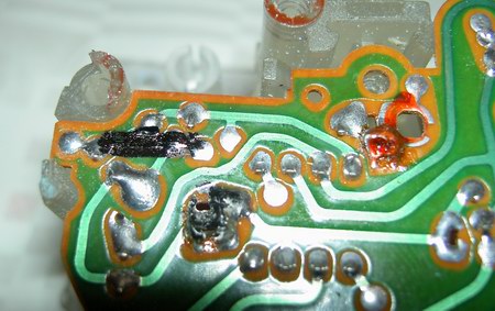 Wir nehmen das Laufwerk wieder auf das Gehäuse und kleben alle Teile millimetergenau so mit dem Epoxydkleber auf die Platine, dass sie mit den schwarzen Markierungen übereinstimmen. Die Positionen kann man auch dem folgenden Foto entnehmen: