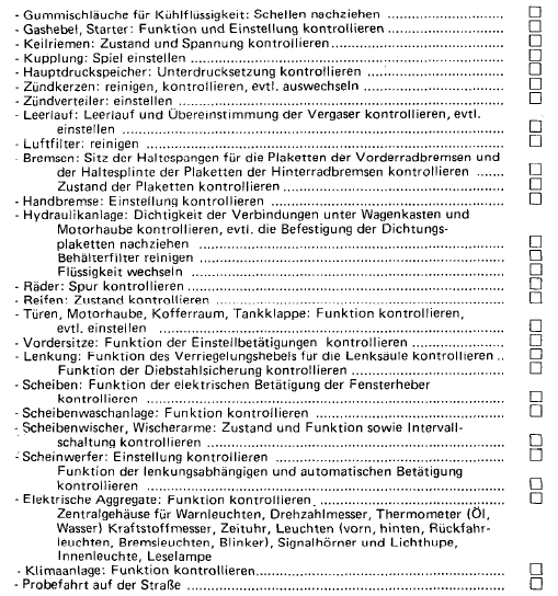Citroen SM - Wartungsplan